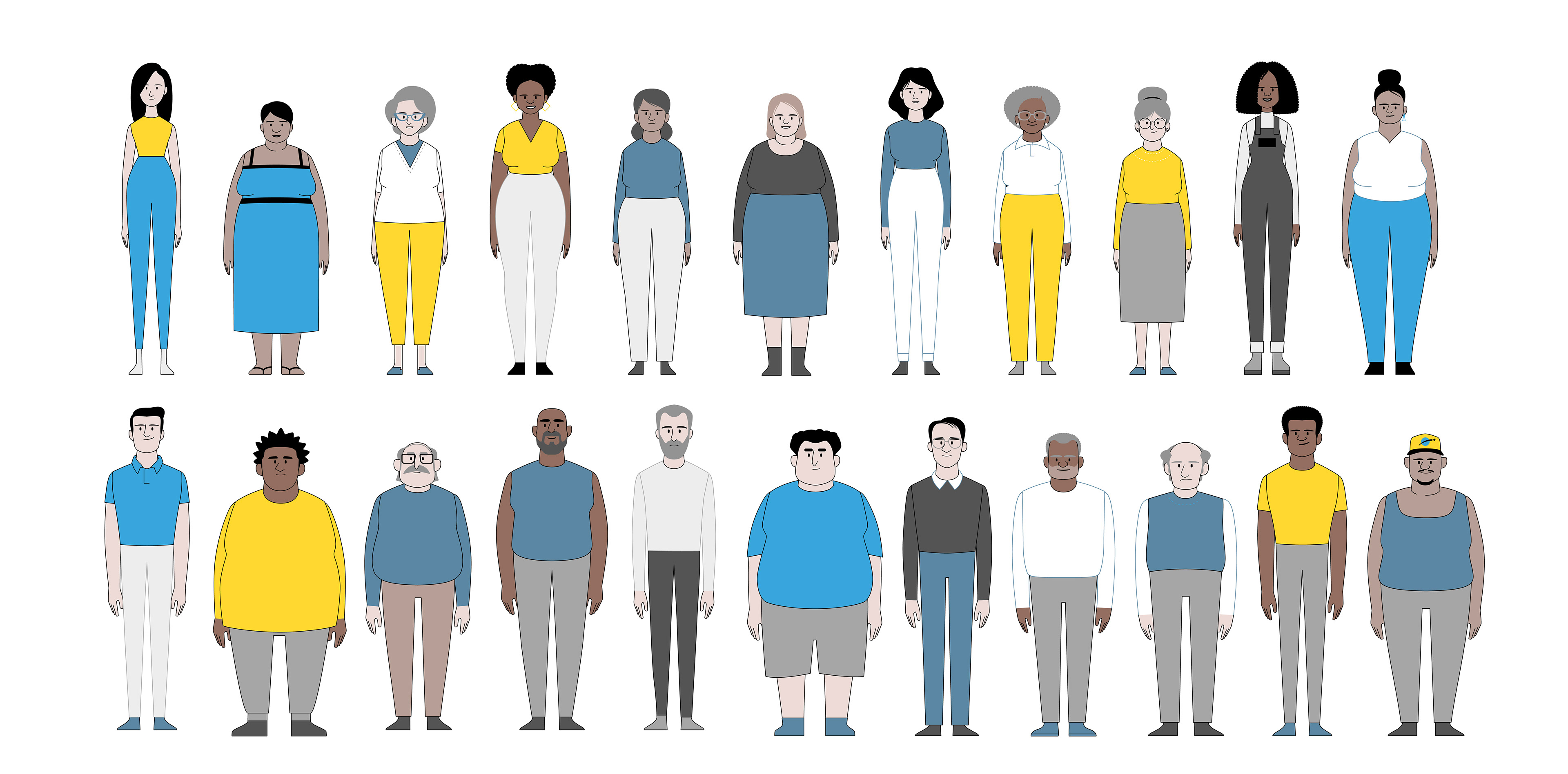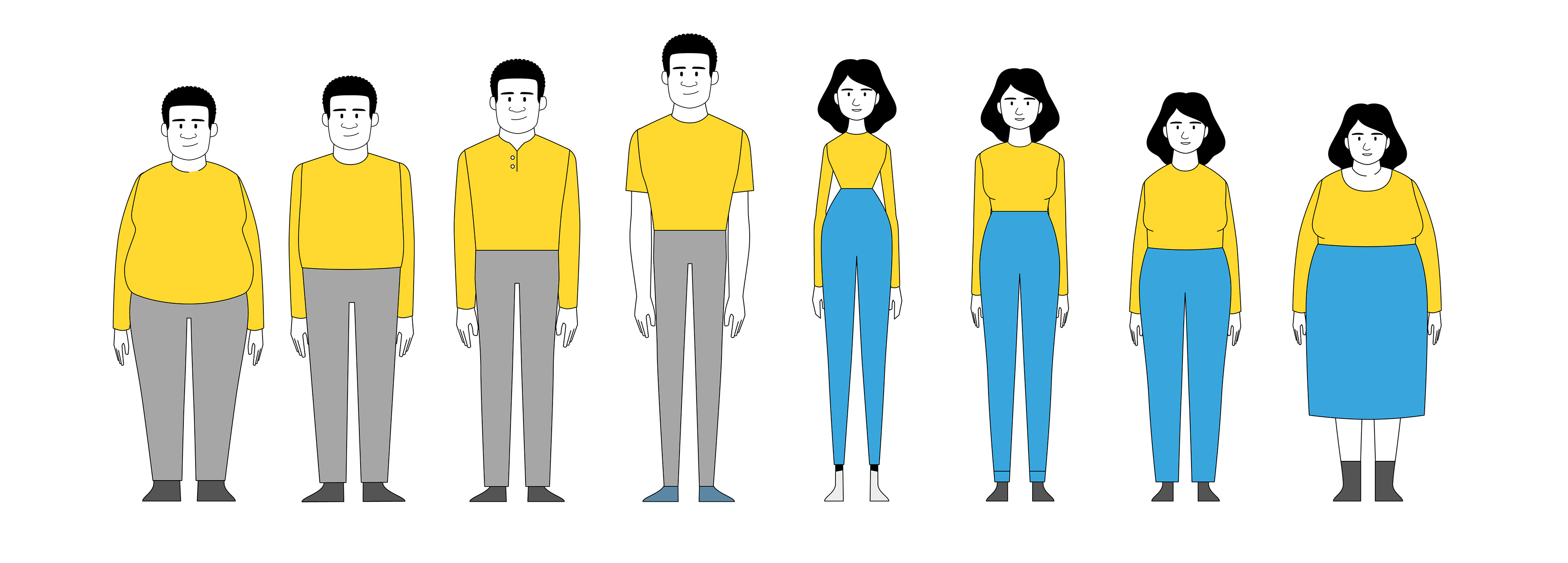 One of the most significant challenges of this project was finding a formal language that could connect with audiences from diverse cultural and social backgrounds. Simplicity wasn’t just a stylistic choice—it was a strategic necessity. We crafted an illustration style that balanced inclusivity and clarity, using a reduced color palette and minimal details to communicate diversity without overwhelming the viewer.